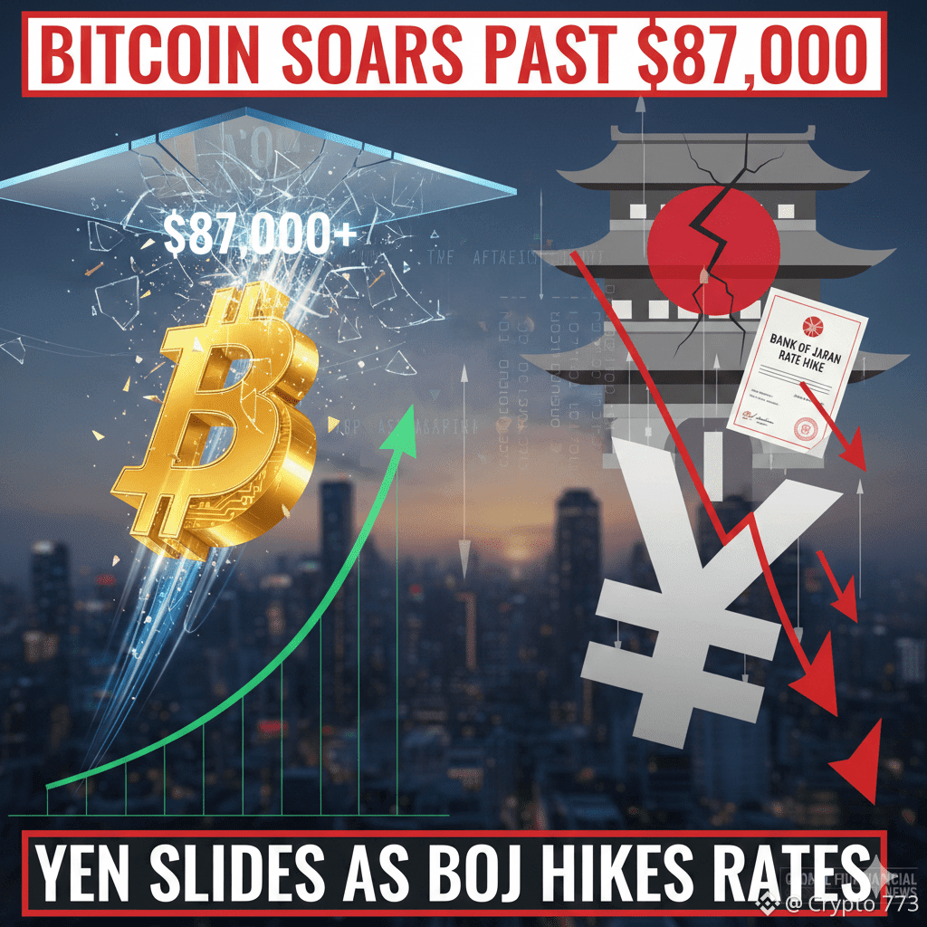 Global financial markets were abuzz today as Bitcoin, the world's leading cryptocurrency, staged a remarkable surge, breaking the $87,000 barrier. This significant leap comes amidst a backdrop of major monetary policy shifts, most notably the Bank of Japan's (BOJ) decision to hike interest rates, a move that subsequently sent the Japanese Yen tumbling.