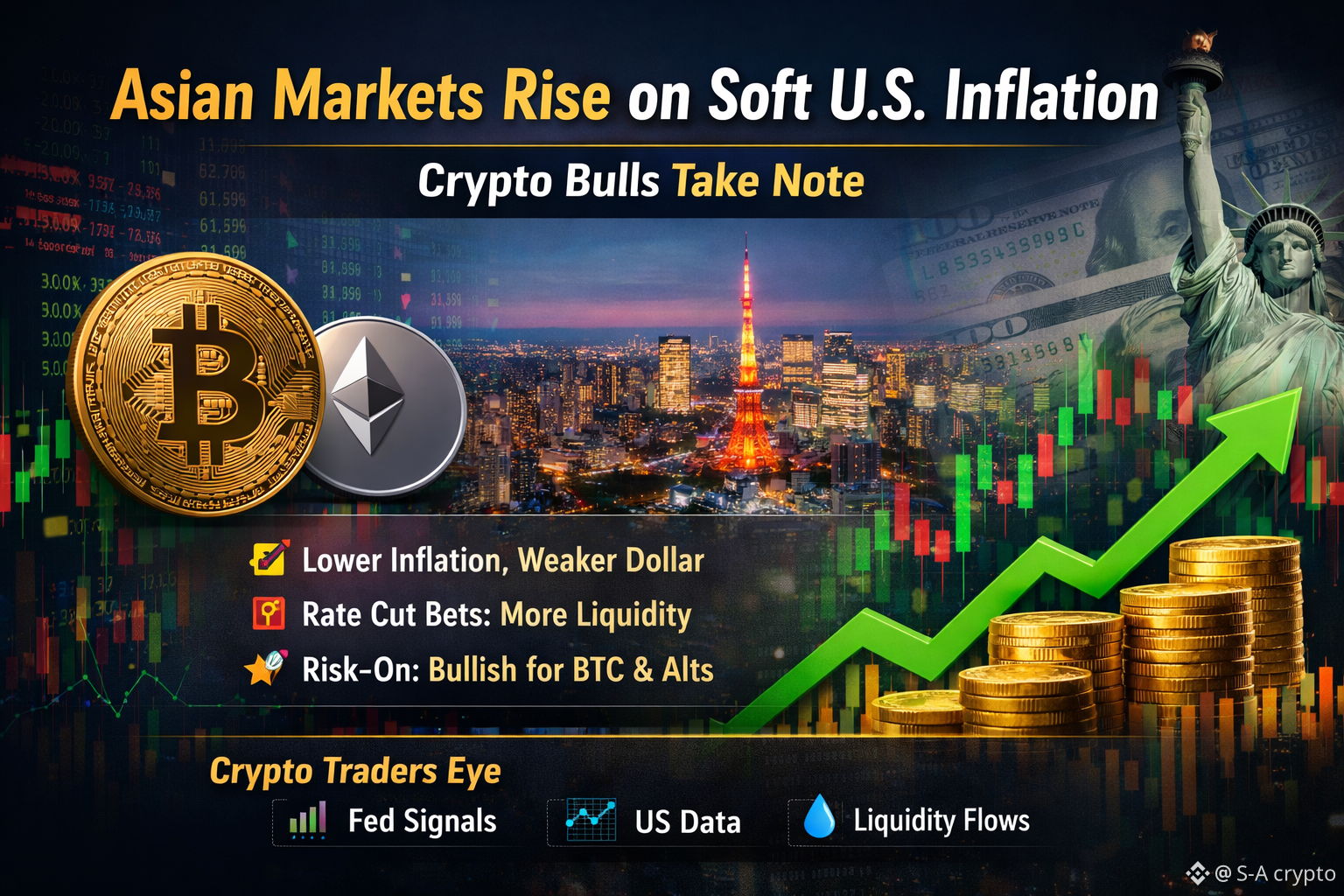 Asian shares moved higher today after cooler-than-expected US CPI data boosted global risk sentiment. Markets are now pricing in a higher chance of Fed rate cuts in 2026, pushing stocks and bonds up — a setup that’s historically positive for crypto.