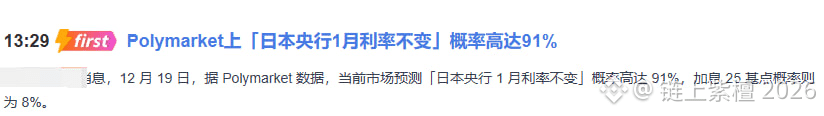 日本央行有91%的概率,宣布“利率不变”! 你别觉得这跟BTC没关系,这里面的水太深了!逻辑链是这样的:日本是全球最后一个坚持零利率的国家,它是全球廉价资金的总水龙头。