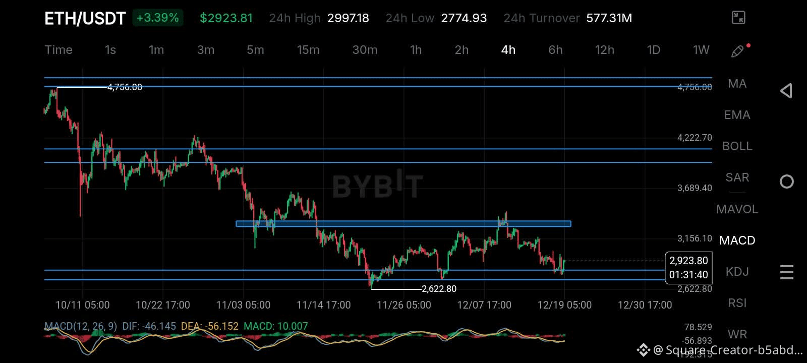 🔹 السعر الحالي: 2,923.81 دولار (+3.39%)🔹 أعلى سعر خلال 24 ساعة: 2,997.18 دولار🔹 أدنى سعر خلال 24 ساعة: 2,774.93 دولار🔹 حجم التداول اليومي: 577.31 مليون USDT