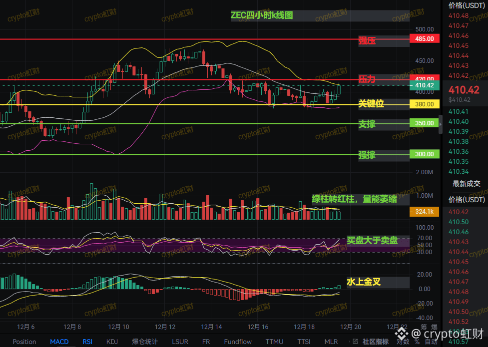朋友们,我是虹财!ZEC这几天玩得挺刺激啊,在420到380之间上蹿下跳。昨晚刚试探380支撑没破,现在直接一根大阳线拉到415附近,现在正虎视眈眈盯着420压力位!所有人都想问:今天能涨破吗?别急,我来用消息面和技术面给你扒个底朝天!