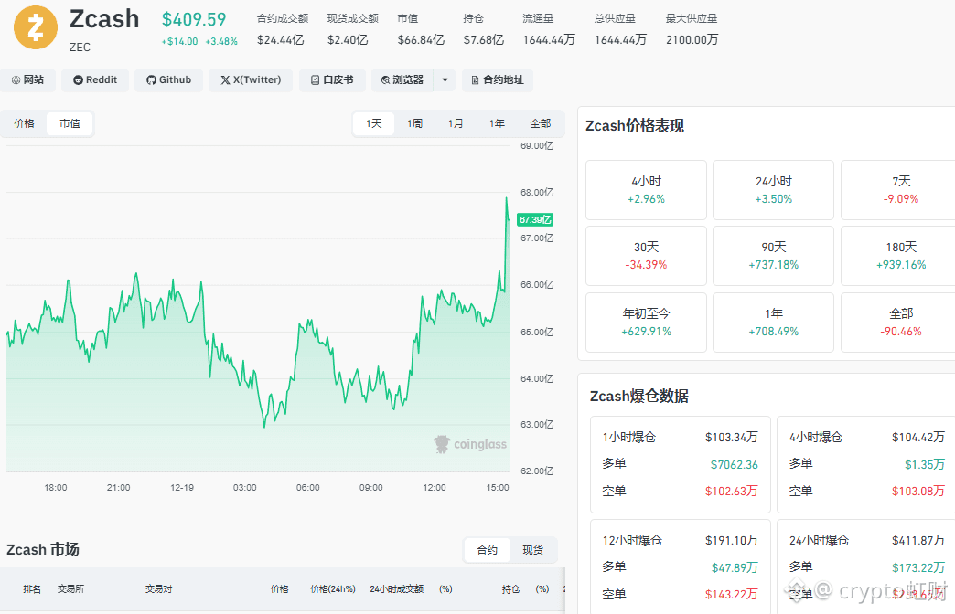 今天直接暴力突破420的可能性不高,更可能是在410-420之间震荡洗盘。如果量能配合,或许能摸一下420,但站稳难度大。理由很简单:市场整体情绪还在修复,ZEC自身30天跌了34%,需要时间消化套牢盘。所以,别一涨就以为牛市来了!