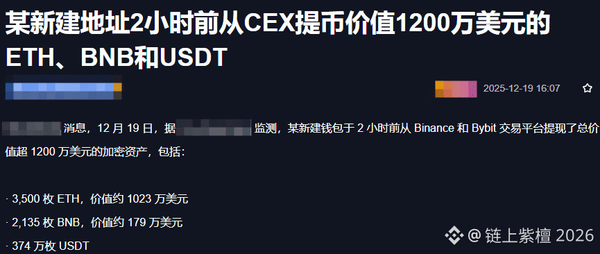 就在2小时前,有个新地址从币安、Bybit一把提了1200万美金出来,光是BNB就提了2135枚。很多人一看提币就喊利好,别急!你得想:他为什么提?如果是看好后市,为什么不等跌更低再接?这时候大额提现,反而可能是大户在转移资产,准备随时砸盘,或者只是换钱包而已,根本不是看涨信号。