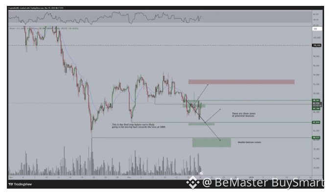 ✨ If Bitcoin can't hold current levels, there's a possibility of retesting the double-bottom pattern with downside risk toward $80,000. But here's the thing: buyers keep stepping in at higher prices each time, which hints that selling pressure might be running out of steam. The $88.5K zone is the line in the sand right now. Break above it, and Bitcoin could quickly push toward the low $90,000s. Get rejected again, and we're staying in this range longer.