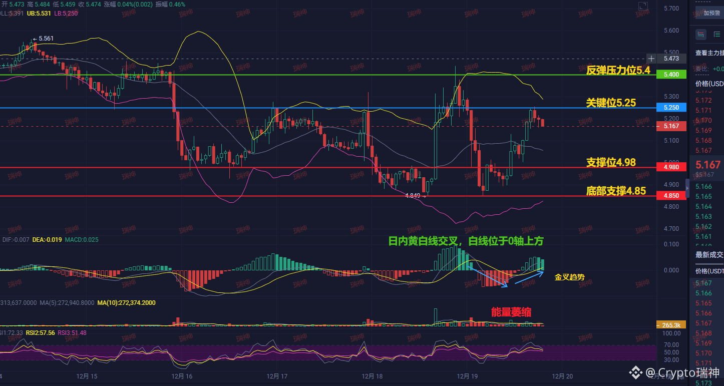 做空机会:如果冲高到5.25-5.3无力突破,可考虑布局空单,止损放在5.4上方,目标看4.98,破位看4.85。