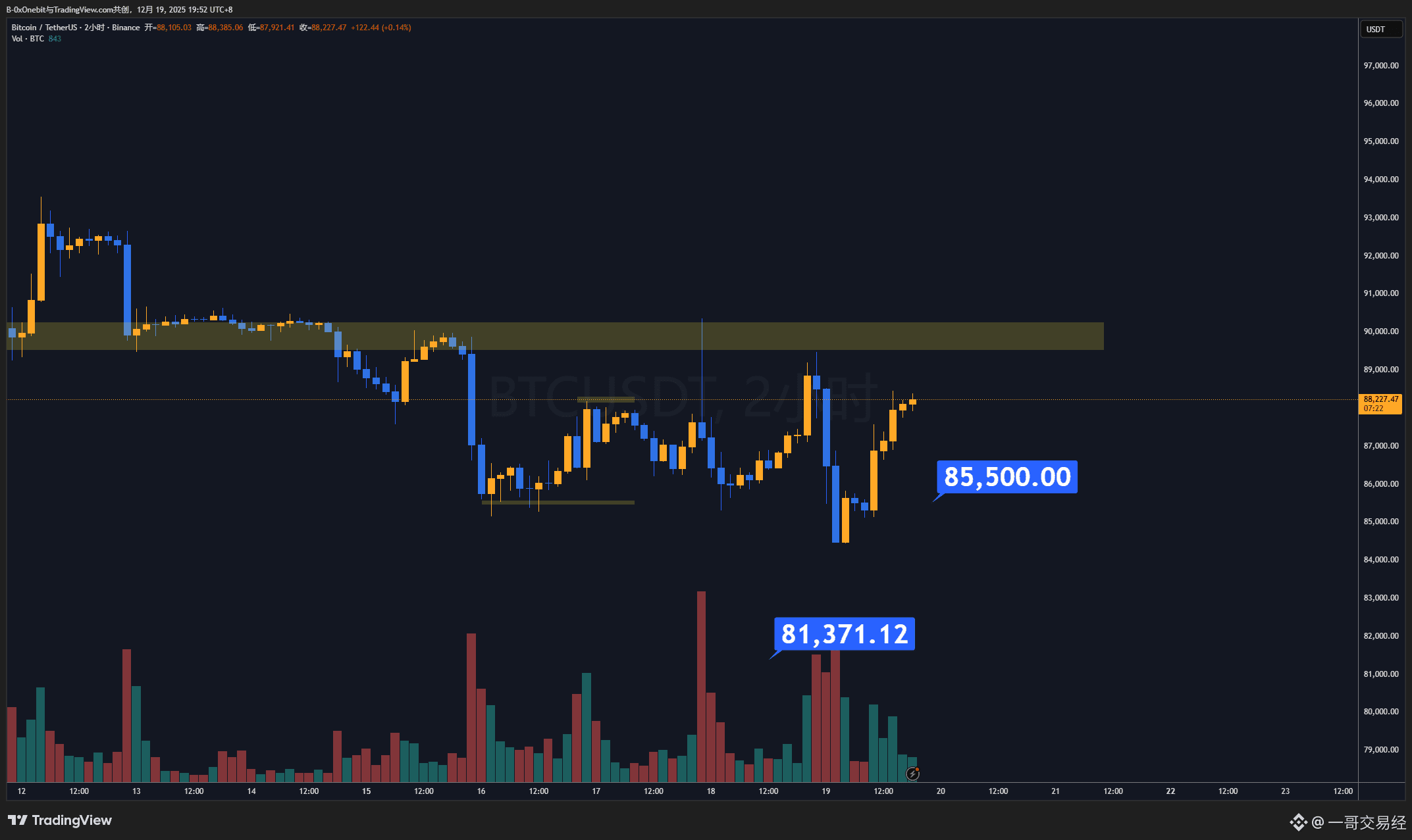 晚间关注8w8一带能否带量向上突破至9w.从而维持短期的盘整结构, 对后世的多头仍然是积极意义, 毕竟大级别的止跌地位震荡, 依然可以以潜在吸筹的角度看待.