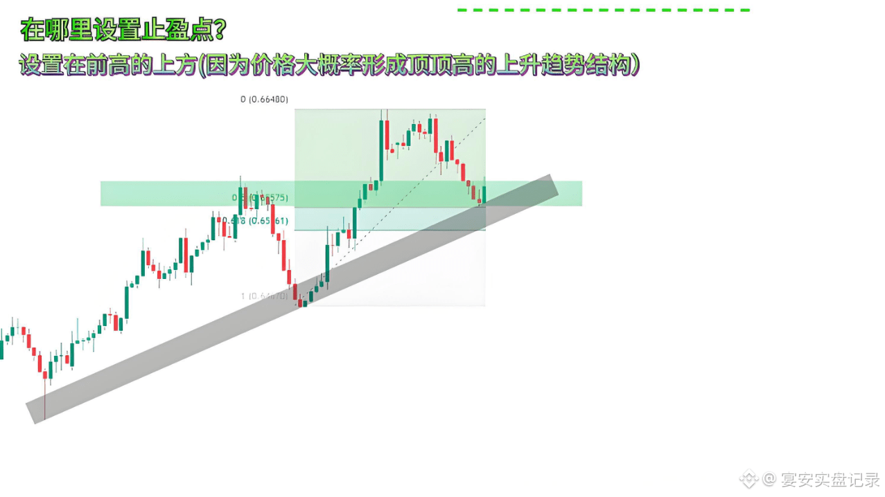 止损怎么设?直接放在关键价位的下方。因为我们是在关键价位附近入场,止损点离入场点特别近,亏损被严格控制。止盈怎么设?因为是上升趋势,价格会不断创新高,所以止盈可以直接放在前高上方的阻力位。哪怕目标定得高,胜率依然很可观——这就是顺势交易的底气!
