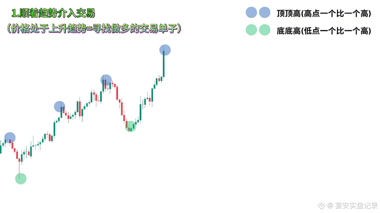 先看价格的整体趋势结构,是不是“顶顶高、底底高”?如果是,那就是明确的上升趋势。方向定了——只做多,不做空。这一步直接帮你过滤掉一半的错误交易机会。