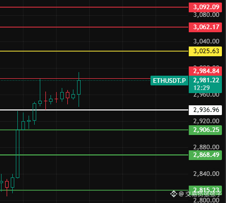 如果夜间1小时级别收线破不了2937这个位置,那多头趋势依旧在,继续往上先看前高2985,破不了小级别会回踩,破了上方压力位留意3025-3062-3092这几个位置附近!#ETH走势分析