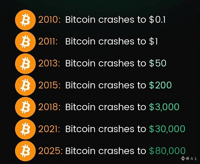If you look back at Bitcoin’s history, one thing becomes very clear: Bitcoin has crashed many times, but it has never stayed down. Every major crash was followed by an even stronger comeback.
