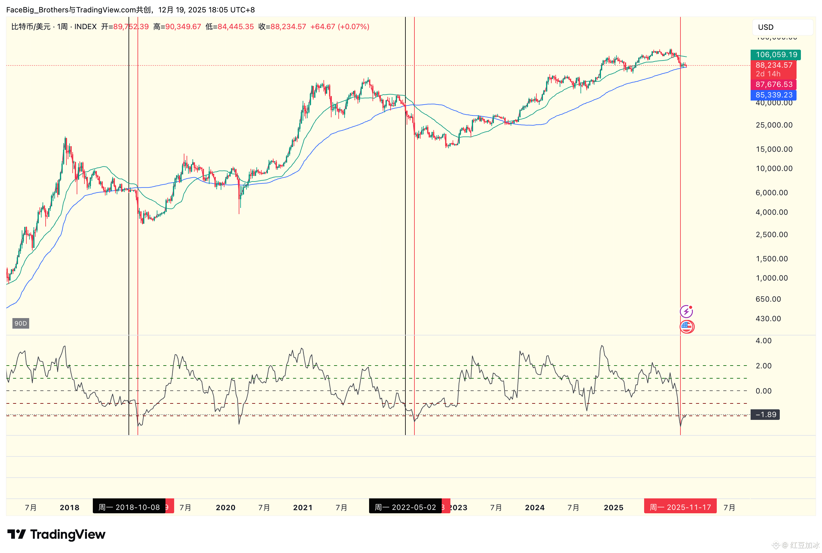 从技术分析角度看,当前比特币已进入Z-Score-2的统计学极端恐慌区,但RVWAP现货成本线尚未跌破,这与2018年和2022年的典型熊市形态不同。这种“先恐慌,未破位”的格局可能意味着市场调整已接近尾声,而非熊市开端。