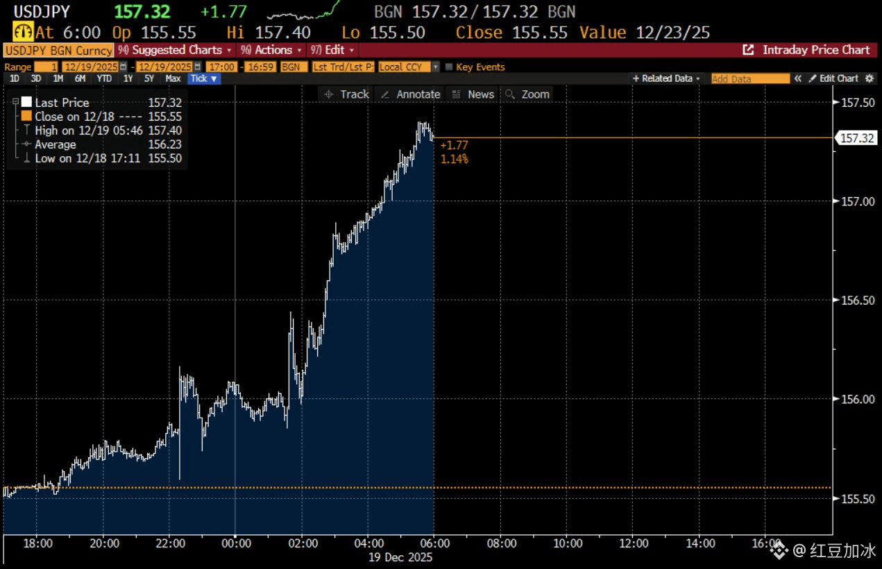 一个有趣的现象是,美元兑日元汇率在加息后一度升至156.37,随后更是触及156.89,创下12月10日以来最高水平。这表明,即使日本央行加息25个基点,日元仍未能走强,反而继续贬值。