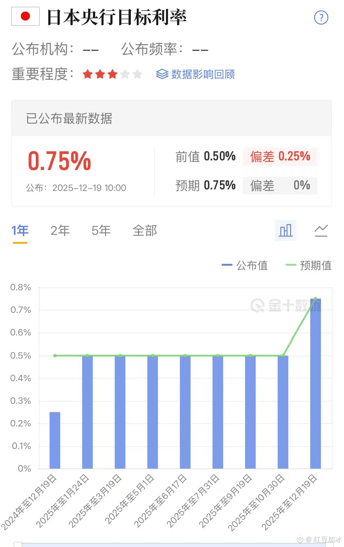 12月19日,日本央行以9:0全票通过决议,将基准利率从0.5%上调至0.75%,创下1995年以来的30年新高。这一消息瞬间刷屏加密圈,郎教授等经济学家纷纷解读,市场更是弥漫着"流动性退潮"的焦虑。