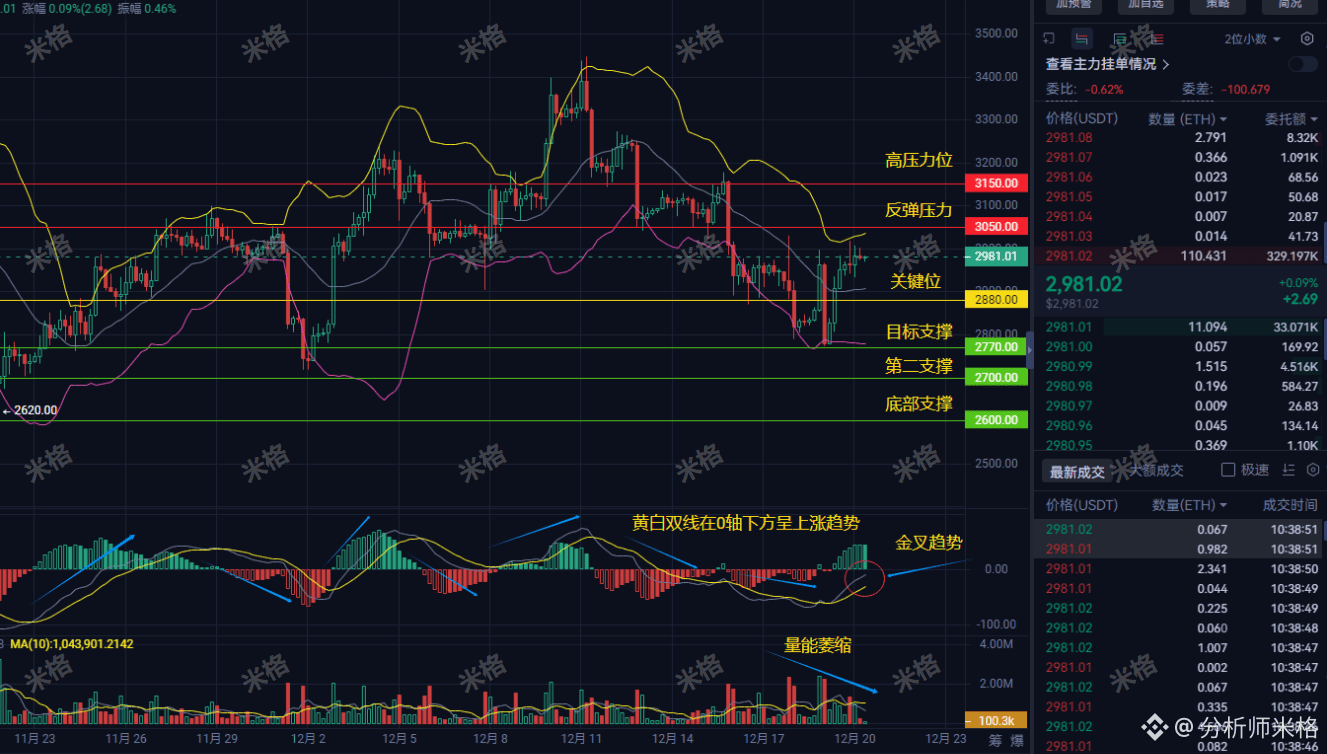 盯ETH盘面盯得我眼睛发干,2981这位置,上来下去磨了一个通宵了,这哪是横盘,这分明是暴风雨前令人窒息般的宁静。