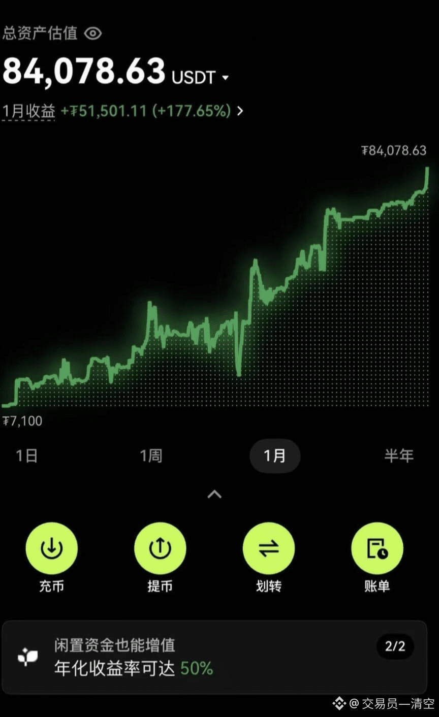 结果呢?四个月账户冲到 1.8 万 U,半年稳稳站在 8.4 万 U,一次爆仓都没有!这不是运气爆棚,是小资金在币圈生存的底层逻辑 —— 纪律比预测管用,系统比运气靠谱。