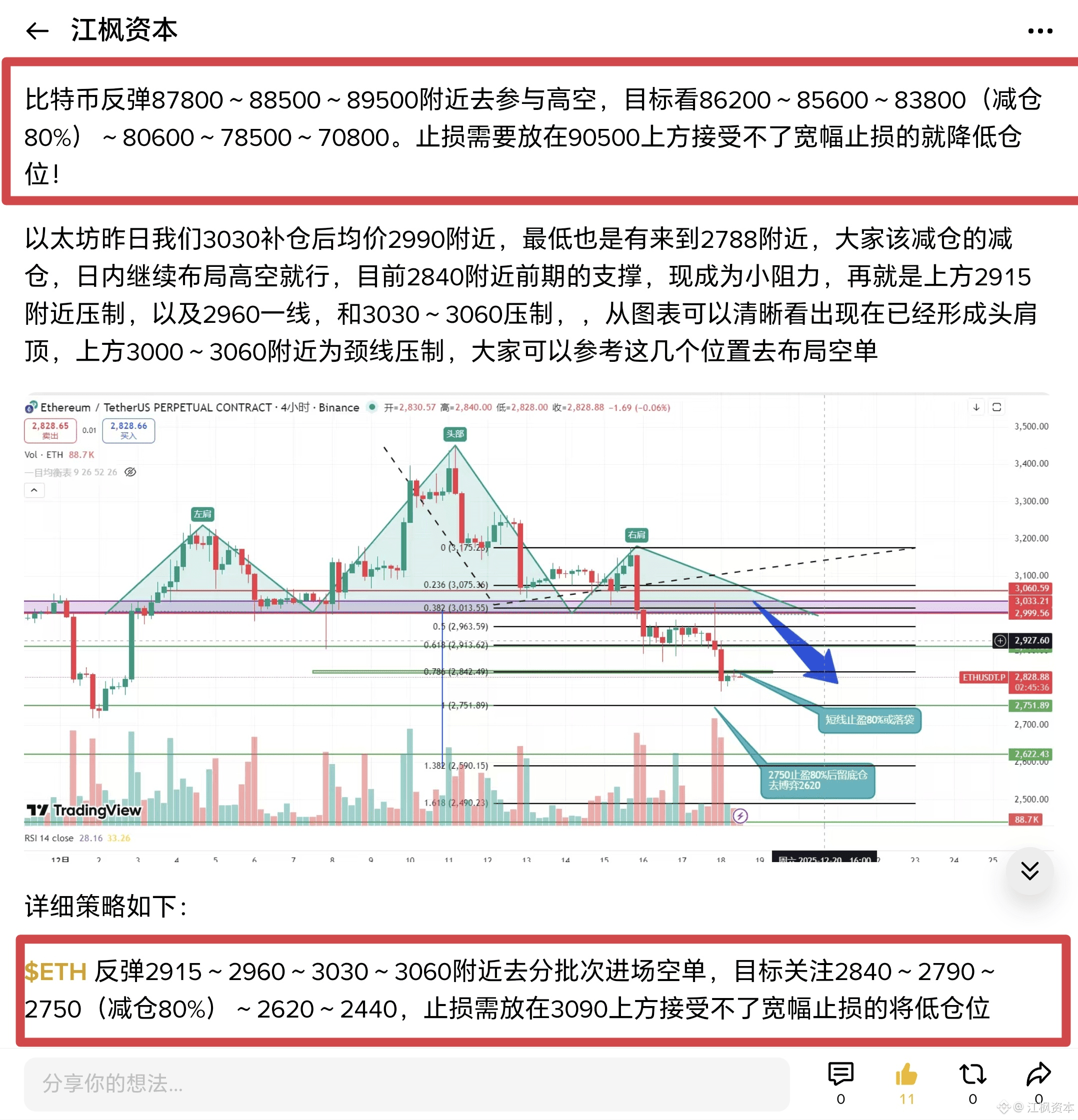 注意:以上所有所观点仅为江枫个人从市场公开数据得到的结论,存在诸多不确定因素,还请大家理性决策,盈亏需自负!以上进出场点位存在点位偏差:BTC:±100,ETH:±5点位偏差!