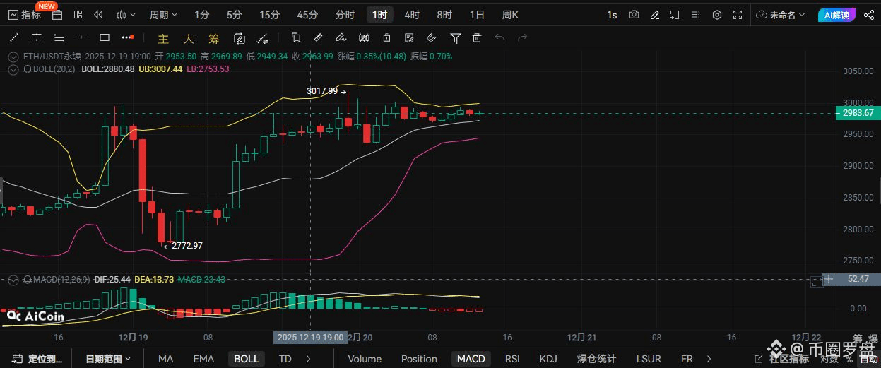 根据最新图表数据,截至2025年12月19日19:00,以太坊报价2983.67,1小时内上涨0.35%。但最让我兴奋的不是价格,而是图表背后透露的三个致命信号。