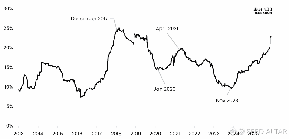 2 year supply, or older, being reactivated over the past 2 years as a % of total supply. Source: K33 Research