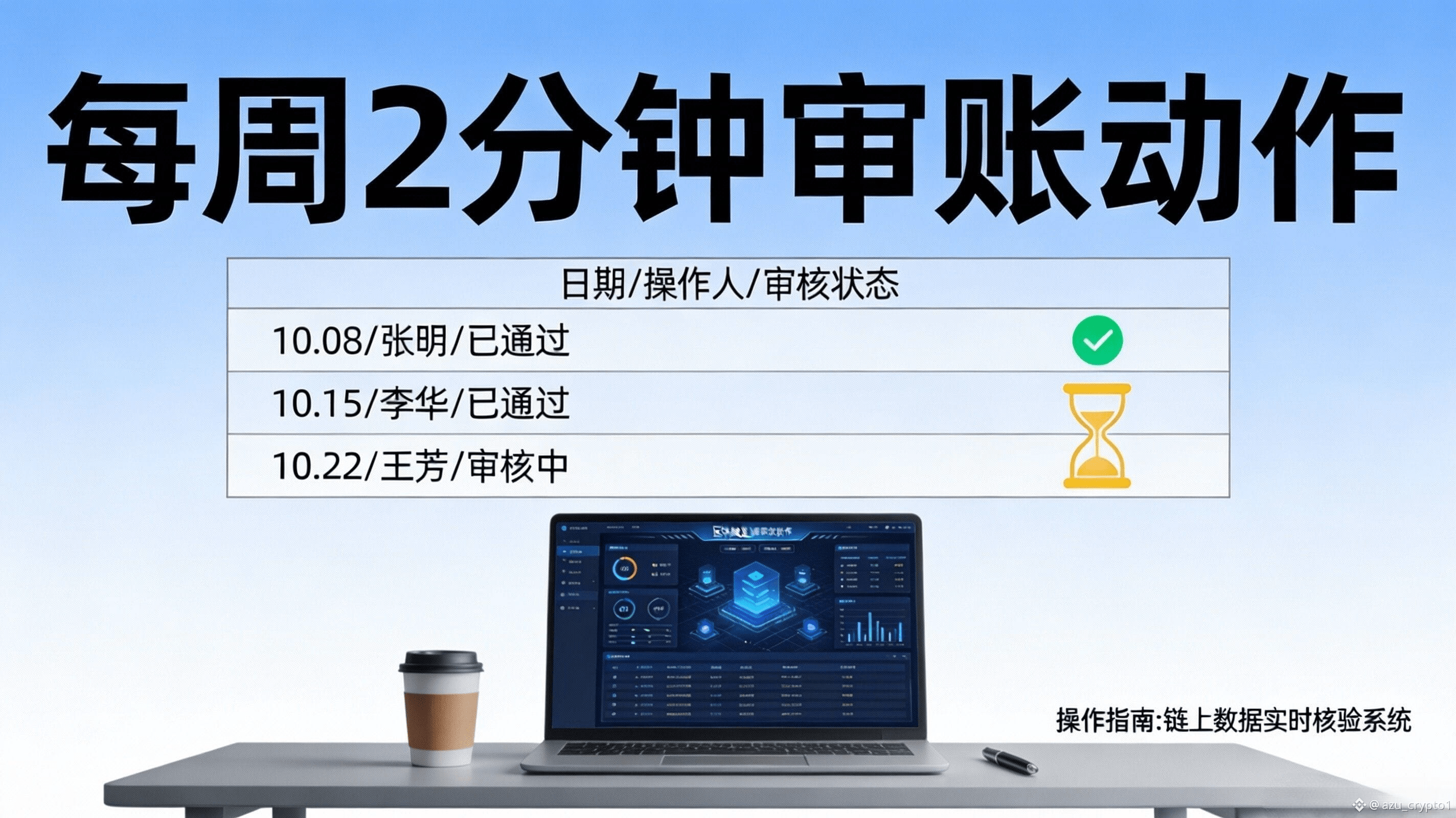 如果你嫌这些太抽象,我给你一个最实用的“每周 2 分钟审账动作”,你甚至不用写长复盘,只记录三行就够了。第一行写 backing ratio 的数值和一周前比是升还是降;第二行写托管分布有没有明显偏向某一方,尤其是集中度有没有升高;第三行写链上与交易所占比有没有发生“跳变”,也就是突然大幅变动。你只要坚持四周,你会发现自己对 Falcon 的信任不再来自“我感觉还行”,而来自“我能描述这张表怎么变、为什么变、变到哪里我会退出”。这才是把透明数据当财务报表读的意义:你不是在找安心,你是在建立判断力。