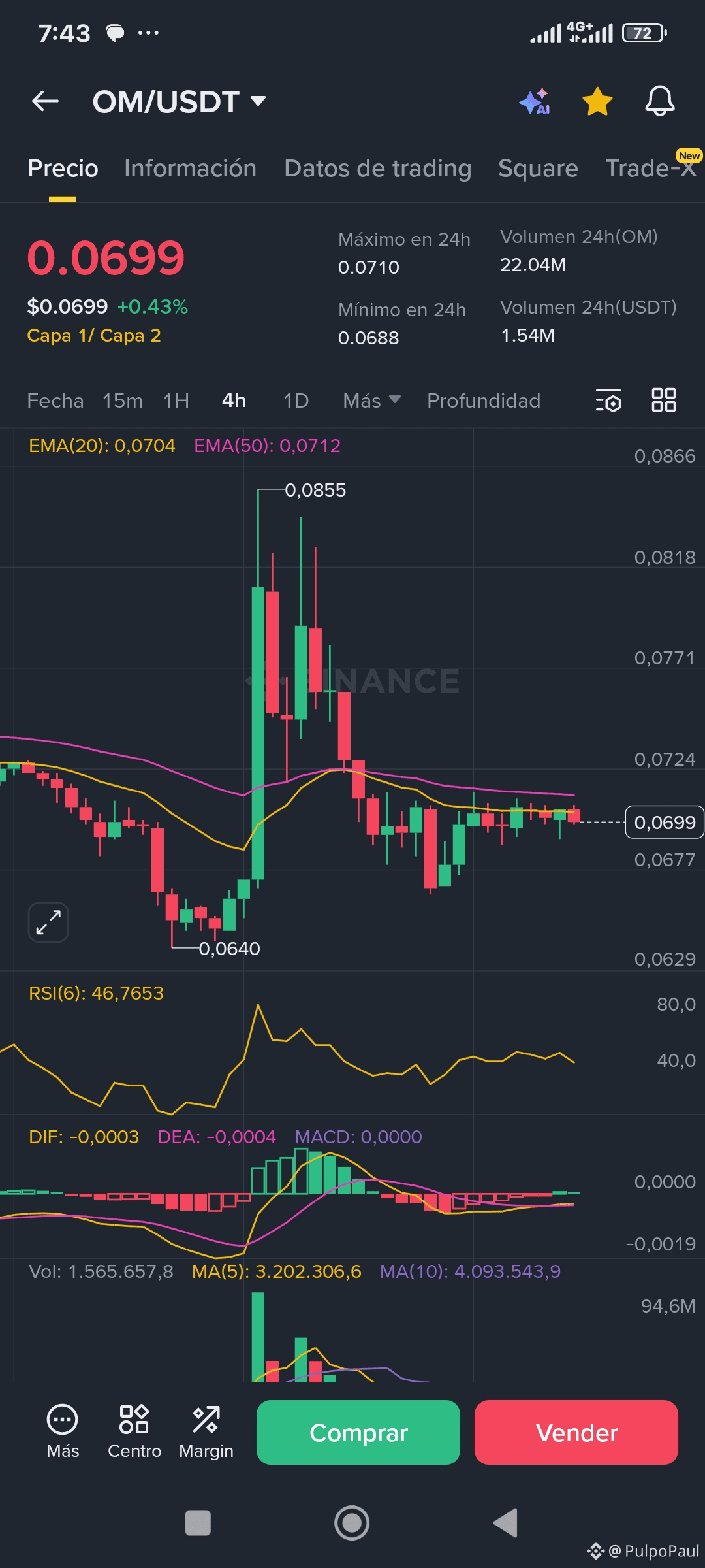 Debajo de EMA20 (0.0704) y EMA50 (0.0712) → presión bajista