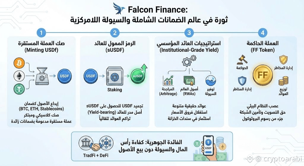 في ظل التطور المتسارع الذي يشهده قطاع التمويل اللامركزي (DeFi)، تبرز الحاجة الملحة إلى حلول مبتكرة تعالج مشكلات السيولة وكفاءة رأس المال. لم يعد المستخدمون يبحثون فقط عن مجرد منصات لتداول الأصول، بل عن بنية تحتية تمكنهم من تعظيم الاستفادة من أصولهم الرقمية دون الحاجة للتخلي عنها. هنا يأتي دور بروتوكول فالكون فاينانس (Falcon Finance)، الذي يقدم نفسه كأول بنية تحتية للضمانات الشاملة (Universal Collateralization Infrastructure) في العالم، بهدف إعادة تعريف كيفية إنشاء السيولة والعوائد على شبكات البلوكشين.