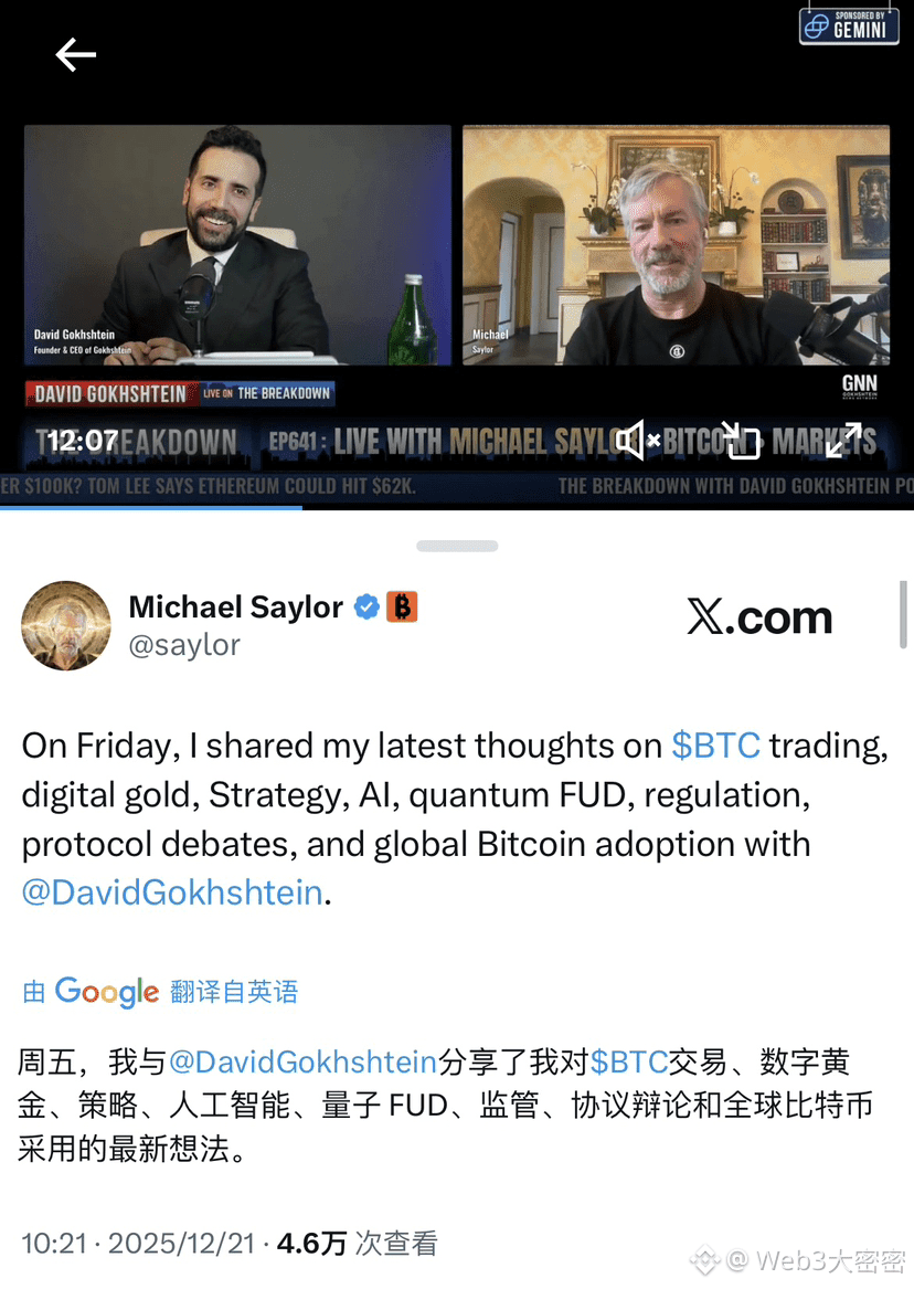 $BTC 访谈时长约36分钟,围绕 $BTC 交易、数字黄金、策略、人工智能、量子 FUD、监管、协议辩论和全球比特币采用的最新想法。