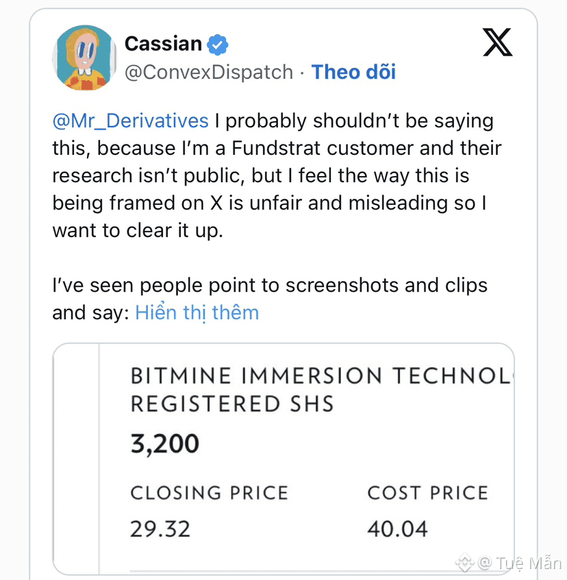 Lee, đồng thời là Giám đốc đầu tư tại Fundstrat Capital và Chủ tịch điều hành BitMine Immersion Technologies (BMNR), dường như đã thừa nhận giải thích này khi trả lời Cassian trên X với dòng chữ: “Well stated” (Diễn đạt tốt), động thái được nhiều người trên thị trường hiểu là sự đồng thuận ngầm với cách giải thích trên. Mặc dù cả Lee và Farrell chưa đưa ra tuyên bố chính thức nào về các ảnh chụp màn hình, phản hồi của Lee cho thấy các quan điểm khác nhau không mâu thuẫn lẫn nhau.