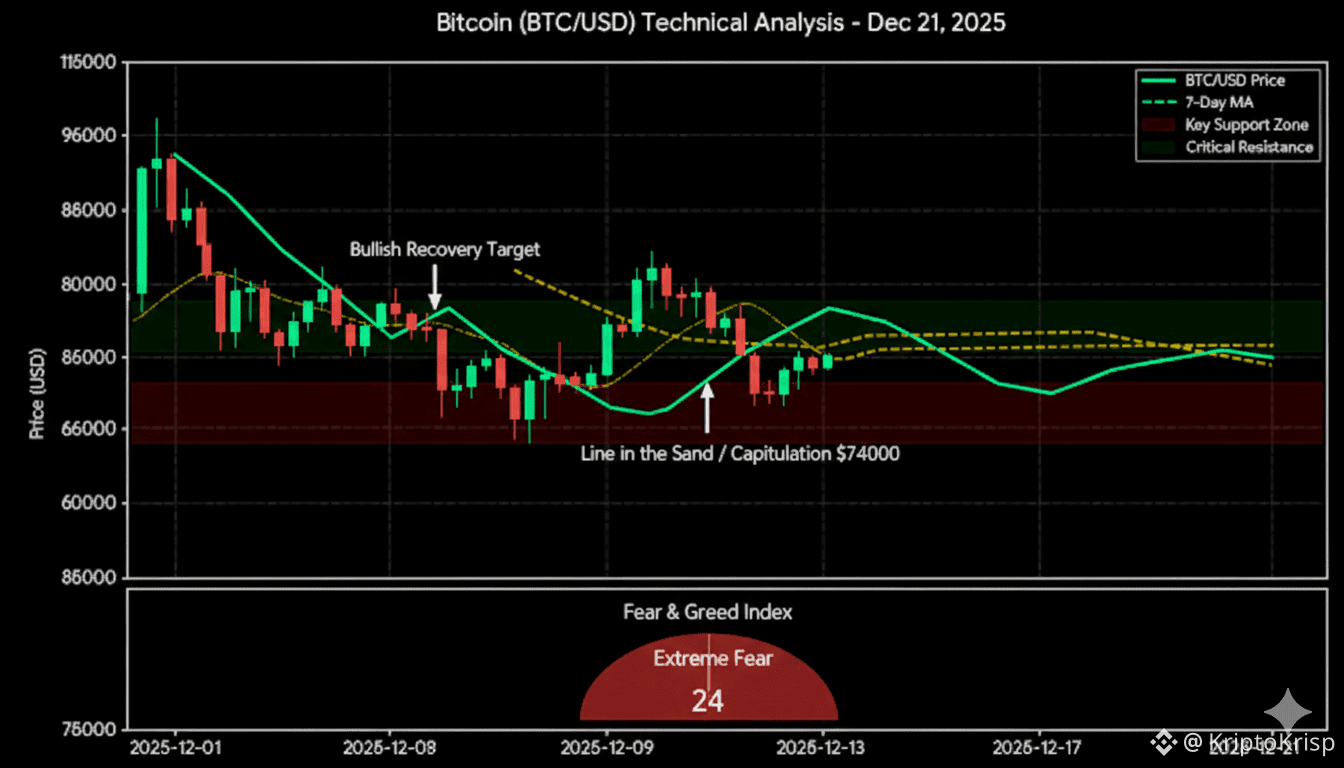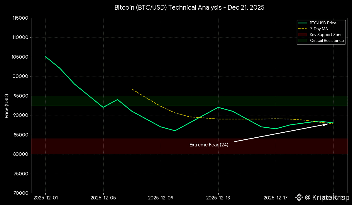 On December 21, 2025, Bitcoin (BTC) is navigating a period of intense volatility and structural transition. After a historic rally earlier this year that saw prices peak near $126,000, the market has entered a significant corrective phase, currently trading around $88,000.