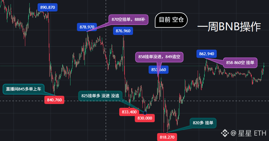 过去一周,BNB的操作不是很多,但做的单子,位置都还不错。目前空仓
