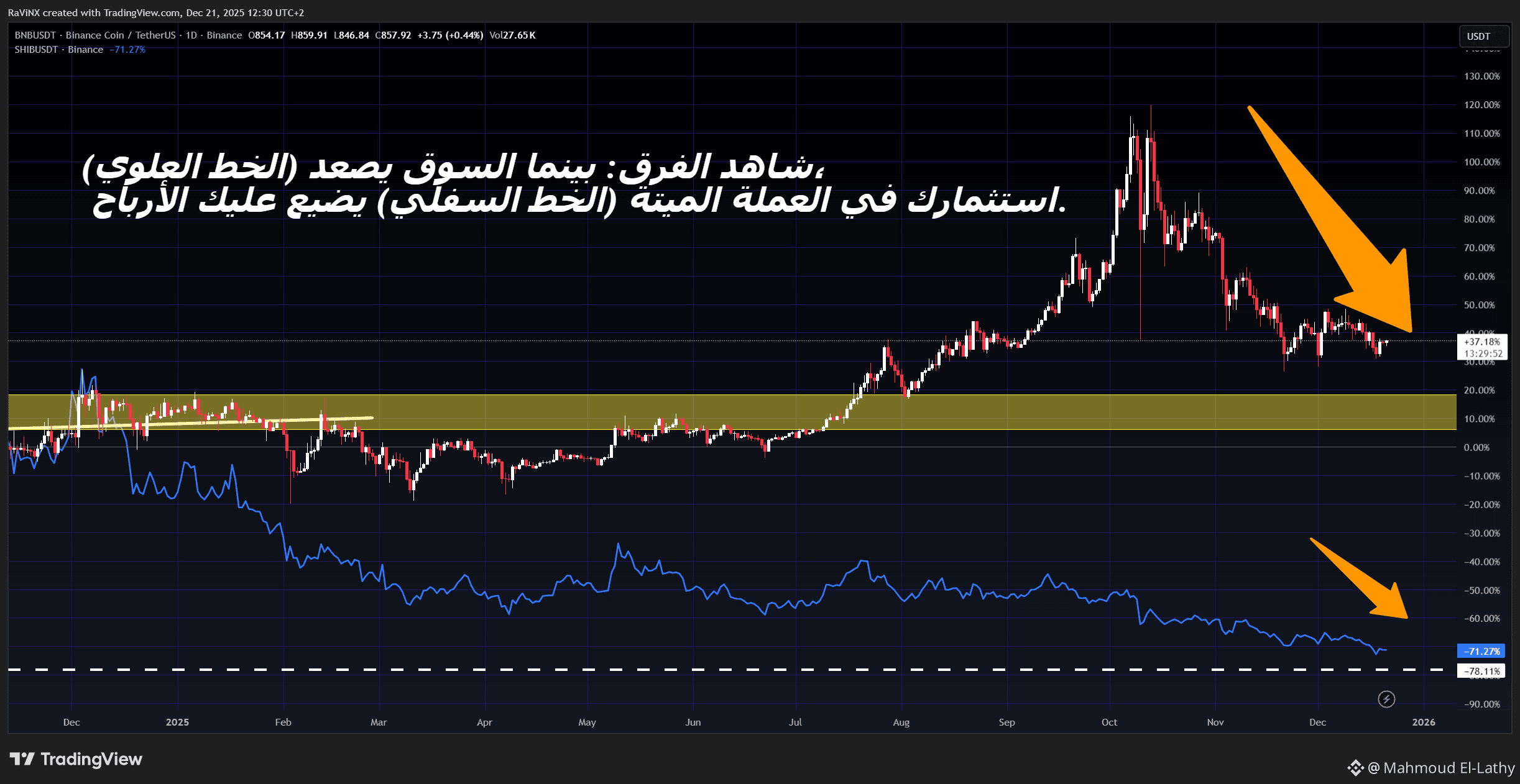 هذا هو الدرس الأهم في إدارة المحافظ. كل دولار مجمد في "عملة زومبي" لا تتحرك، هو دولار ضائع كان يمكن أن يعمل لصالحك ويحقق أرباحاً في عملات قيادية مثل $BNB أو في تريندات صاعدة جديدة.