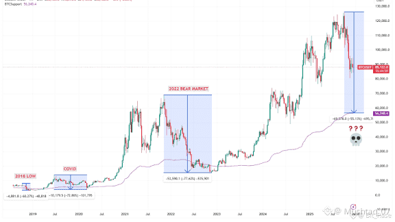 If history repeats, and $BTC hits $56K (realized price), we could see a ~55% drop from its recent all-time high (ATH). đ