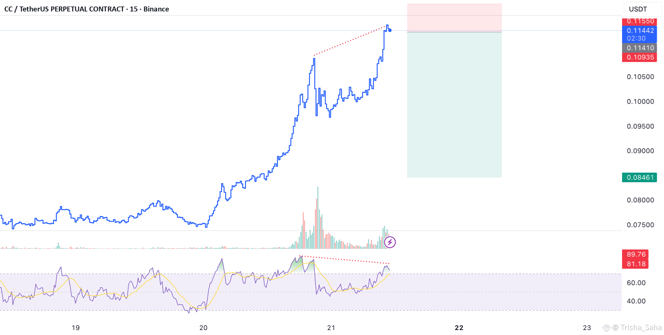 One of my favorite setups. Strong bearish divergence is confirmed on both the 15m and 1h timeframes after an excessive price expansion into overbought territory. Price is now trading below a major resistance, with repeated upper wicks signaling rejection and failed breakout attempts. This unhealthy structure suggests distribution is underway, increasing the probability of a sharp sell-off.