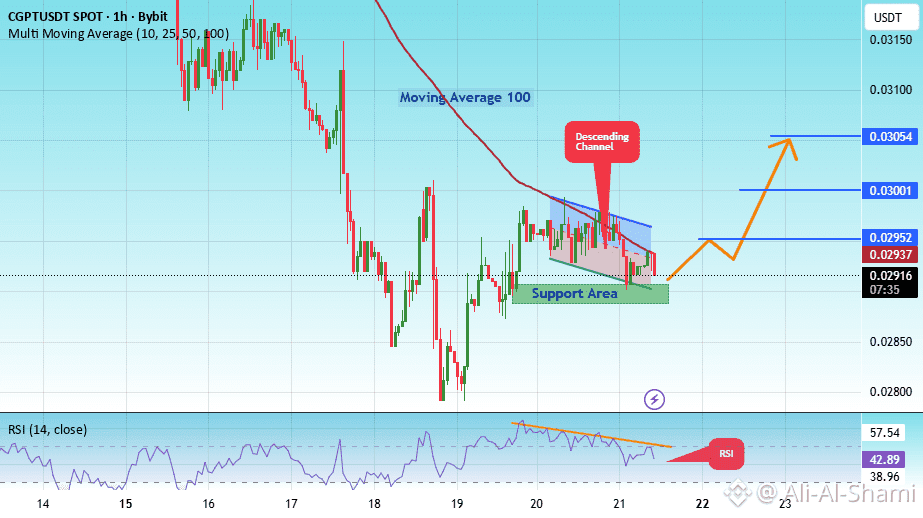 سعر يتحرك في قناة هابطة على إطار زمن الساعة. لقد وصل إلى الحد الأدنى ويتجه نحو كسر فوقه، مع توقع إعادة اختبار الحد الأعلى.