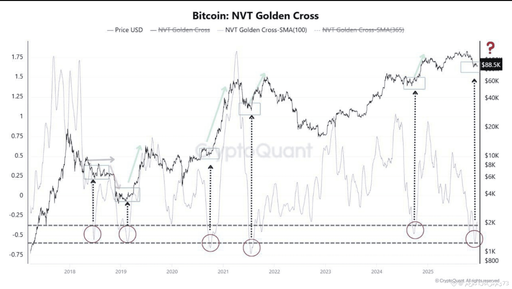 مؤشر NVT Golden Cross يقيس العلاقة بين قيمة الشبكة (Network Value) و حجم التحويلات على البلوك체ين (Transaction Volume).