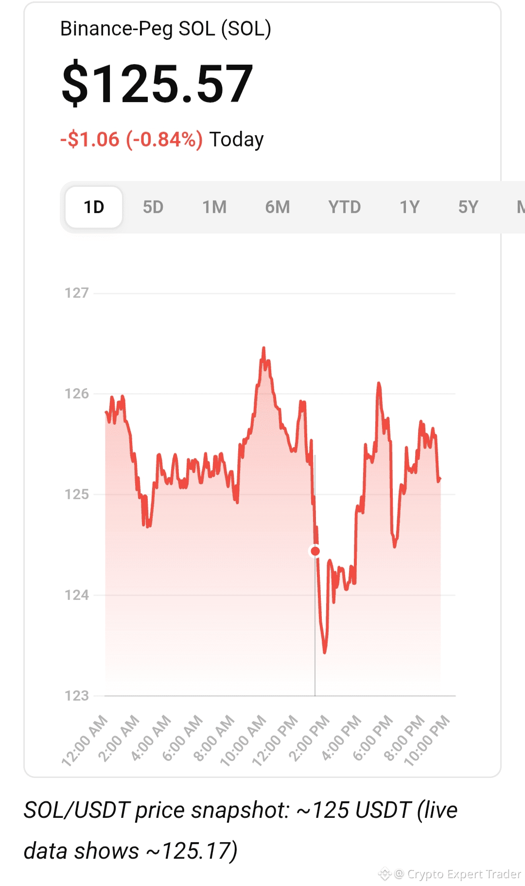 SOL/USDT price snapshot: ~125 USDT (live data shows ~125.17)