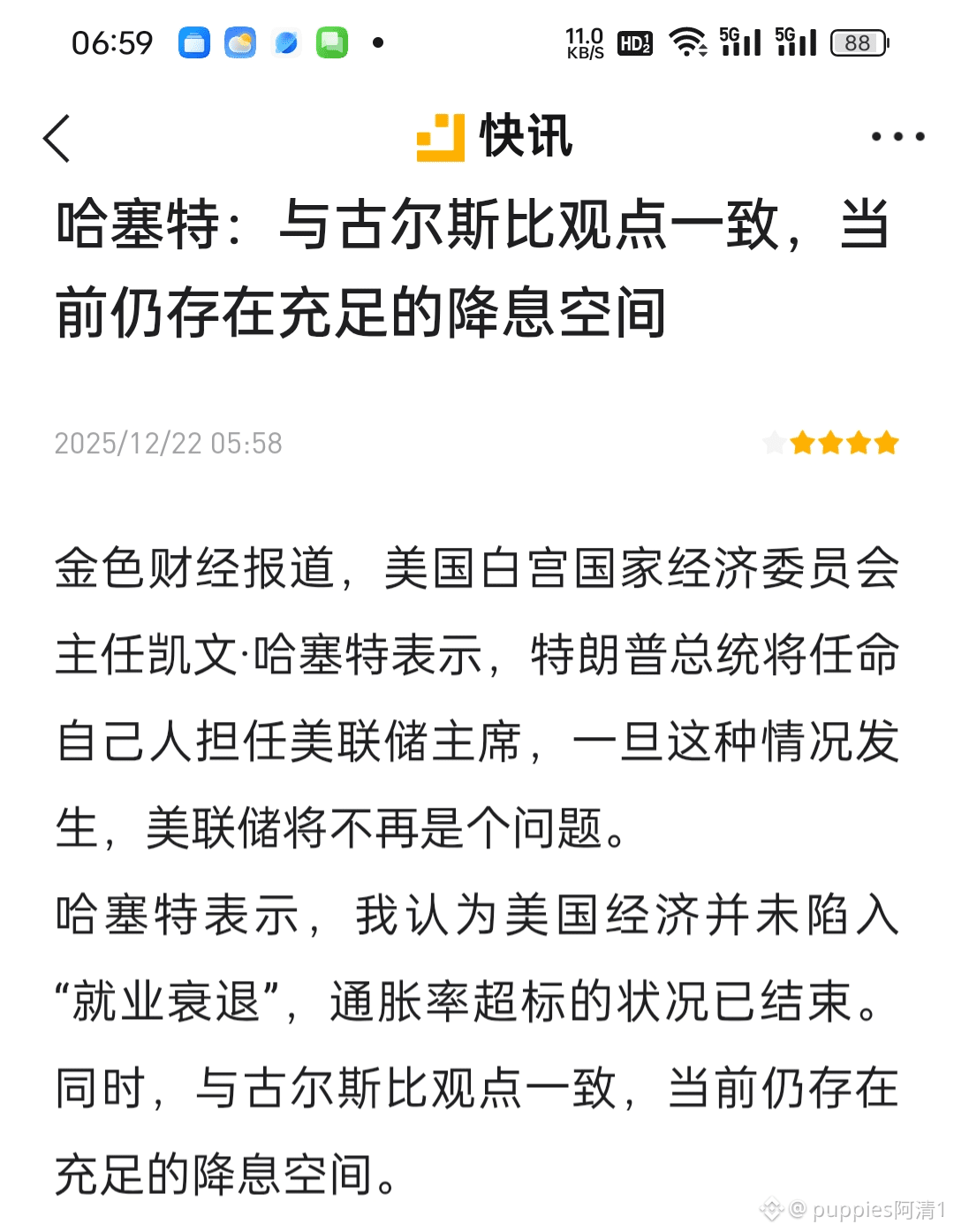 当前全球经济正处在政策调整的关键窗口,哈塞特与古尔斯比的共识是否会成为美联储进一步宽松的“催化剂”?2026年降息幅度能否达到市场期待的100个基点?这场政策博弈的后续演进,值得每一位投资者持续关注。