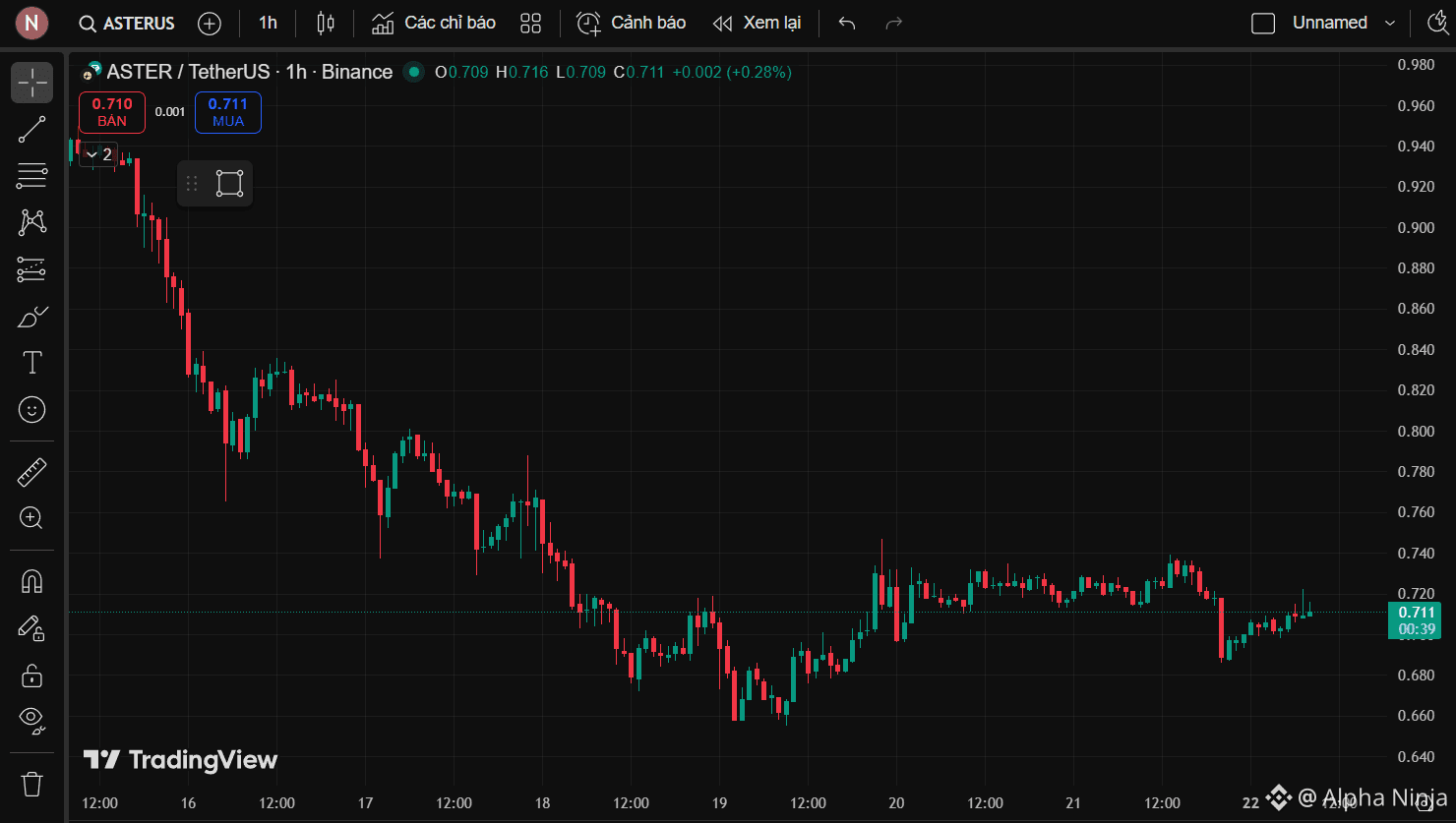 ASTER rơi dài và rơi rất đều. Không pump cứu, không hồi sâu. Điều đó cho thấy phần lớn holder yếu đã rời cuộc chơi. Nhưng ở vùng giá hiện tại, nhịp giảm đã chậm lại rõ rệt. Giá đi ngang hẹp, mỗi cú đạp xuống đều không còn lực tiếp diễn. Volume cạn, thanh khoản mỏng, đúng kiểu thị trường bỏ quên. Với những coin như vậy, chỉ cần dòng tiền nhỏ quay lại cũng đủ tạo cú bật khó chịu. Đây là dạng chart mà khi nó chạy thì người đứng ngoài không kịp phản ứng.