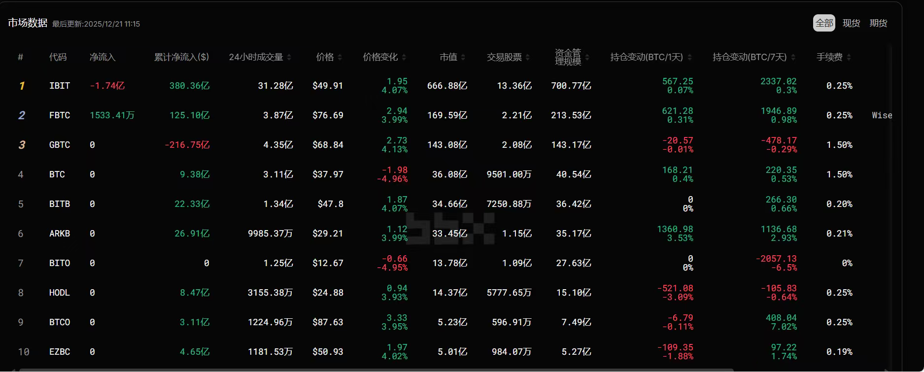 日本央行加息:然而,市场的乐观情绪很快被日本央行的决策所打断。12月19日,日本央行宣布将基准利率上调至30年来的最高水平。尽管历史模式显示(例如在2024年3月、7月及2025年1月加息后,比特币均出现显著回调),日银加息通常会导致风险资产承压,但此次为提前消化,市场反应较为平静,现美联储降息提供的支撑与日本央行加息以及明年1月抛售ETF将带来的压力相互交织,使得市场进入了一个由技术面主导的震荡区间。