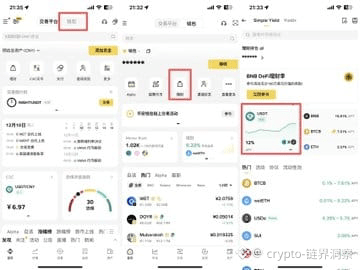 打开币安交易所,在导航栏选择【钱包】,进入币安钱包后点击【理财】,接着在理财页面里选择【USDT板块】。