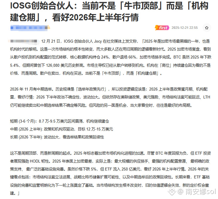 IOSG的合伙人Joey,轻描淡写几句话,就揭开了2025年血淋淋的真相:这不是熊市,这是一场针对散户的“静默收割”。