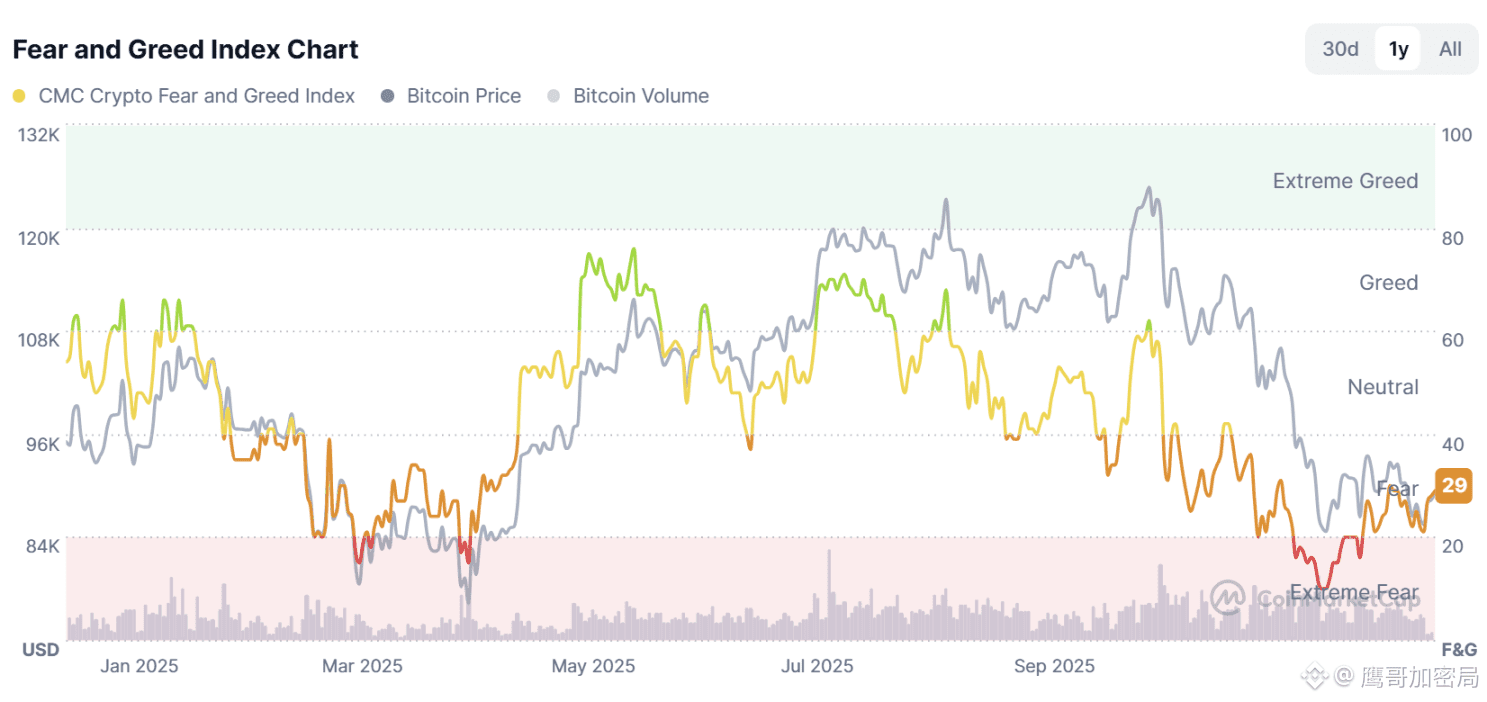 自美联储与日央行的政策剪刀差落地后,加密市场持续陷入低波动僵局。恐慌贪婪指数跌落至30以下,多数玩家经历黑天鹅洗礼后陷入观望——机构与交易员对后市判断出现明显分化。