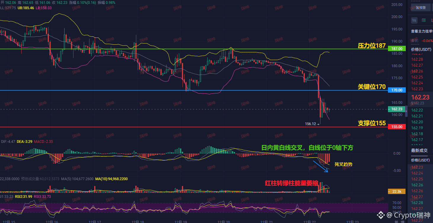 瑞神认为AAVE很难站稳160!反弹在165-168区间,然后就会继续下跌。一旦跌破155支撑,下一目标可能直奔145甚至更低。逻辑很直白:巨鲸抛售+技术死叉+资金流出,三重利空叠加,反弹都是逃命机会!