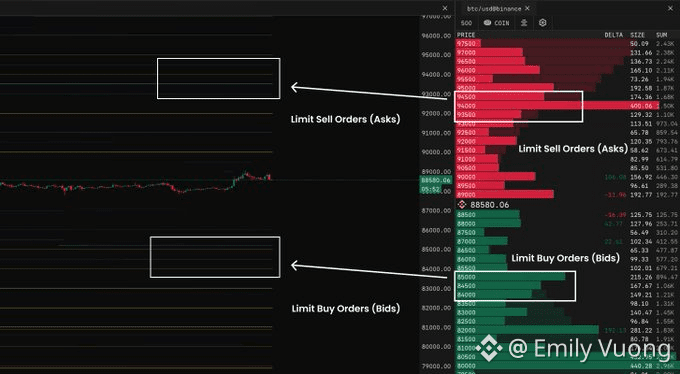 📌 Order book không phải là câu trả lời khẳng định rằng giá sẽ đi về đâu mà chỉ đơn giản là “Thanh khoản đang nằm ở đâu, dày mỏng thế nào?”