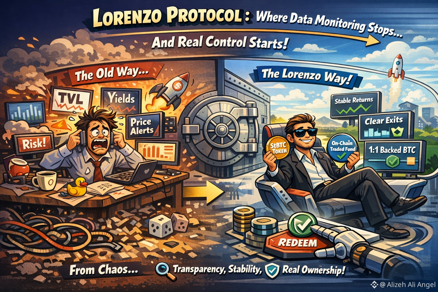 @Lorenzo Protocol I used to think the responsible way to be in crypto was to watch everything. A tab for yields, a tab for TVL, a tab for price alerts. If the numbers moved, I felt prepared. It took a couple of rough market weeks to admit the truth: monitoring is not the same as control. Seeing something happen is different from having a clean way to respond when it does.
