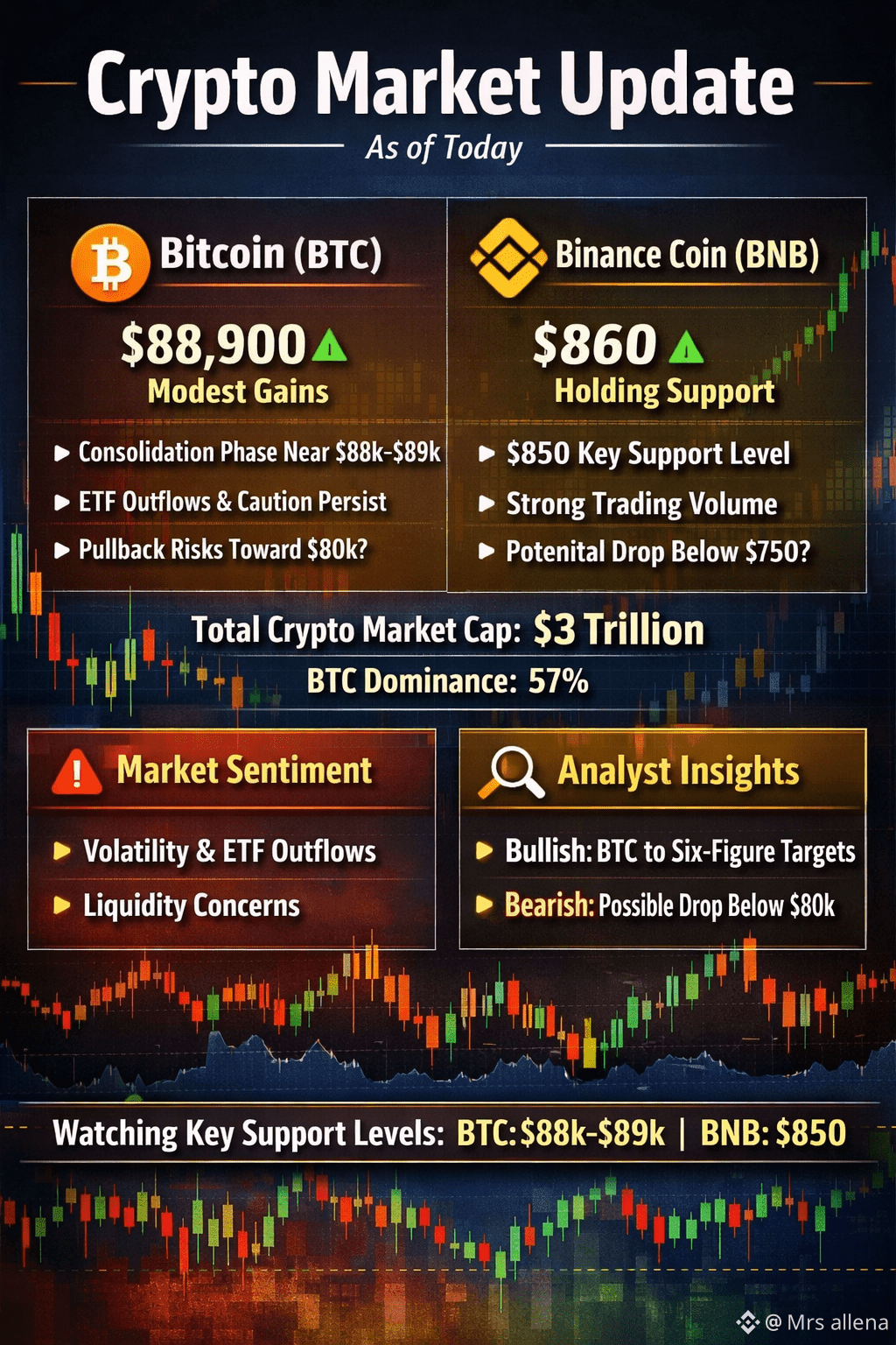 BNB has been oscillating around the $850–$880 range, and technical analysts view $850 as a critical support level. A break below could lead to further tests around $700–$750. �