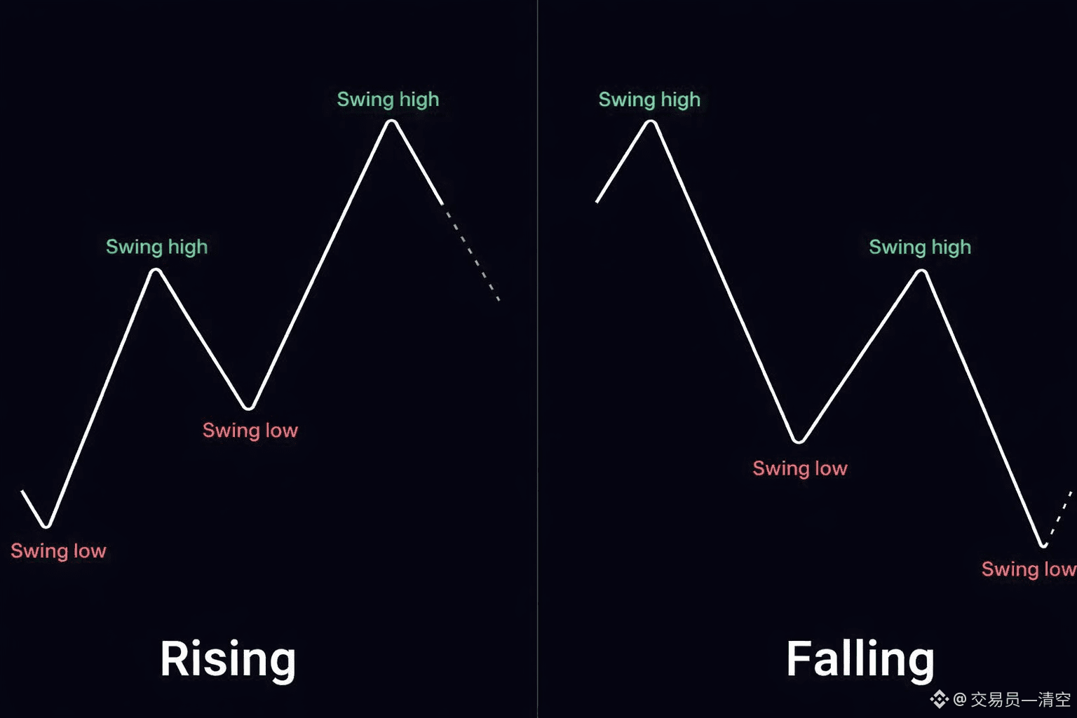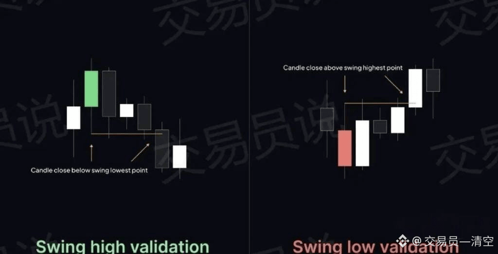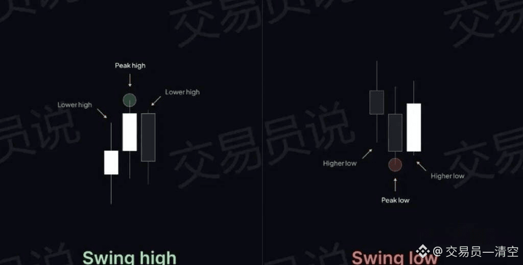 在聪明钱理论(SMC/Smart Money Concept)中,正确识别波动高低点是入门关键: