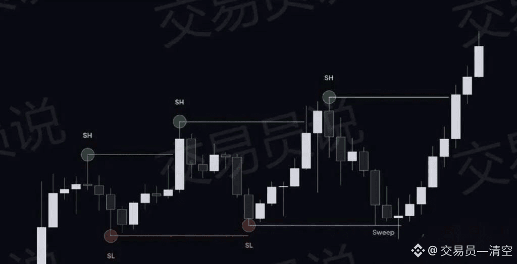 若仅以影线刺破关键价位但未收盘于突破区间,则属于 “流动性扫荡(Liquidity Sweep)”,不构成结构性变化 —— 这意味着价格仅为触发散户止损单而短暂异动,并非趋势反转信号。