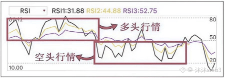 RSI>50,视为多头行情;RSI<50,视为空头行情。