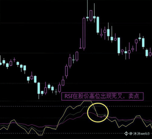 (死叉在80以上的超买区,预示下跌将要到来。死叉在中轴线50以下弱势区域,下跌不会猛烈。)