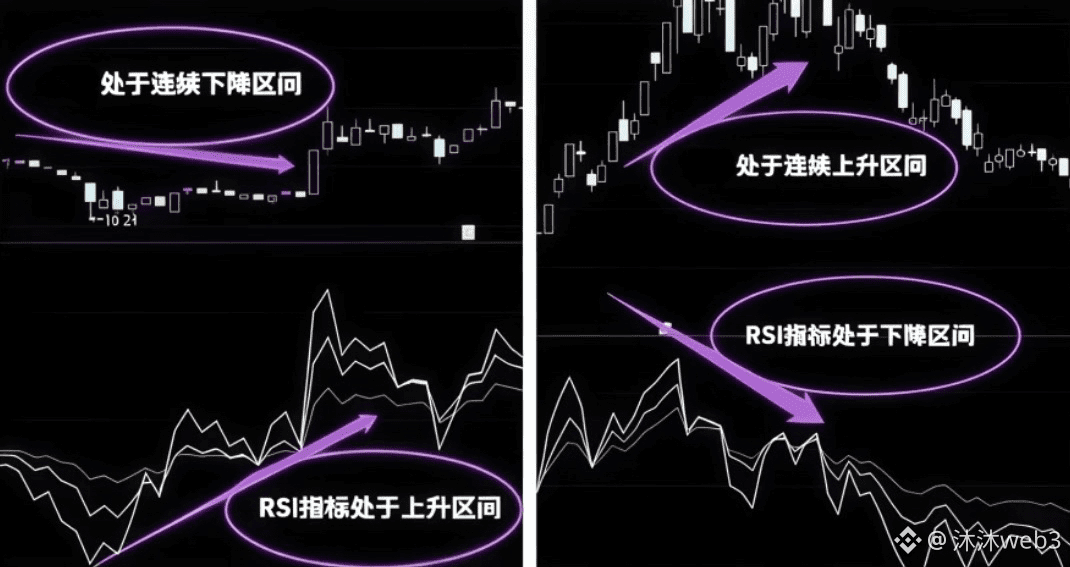 当K线图上的价格一次又一次的走出新低,而RSI在创出近期新低后,反而形成一次比一次高的走势,这就是底背离。底背离现象一般是价格在低位即将反转的信号,可考虑买入。